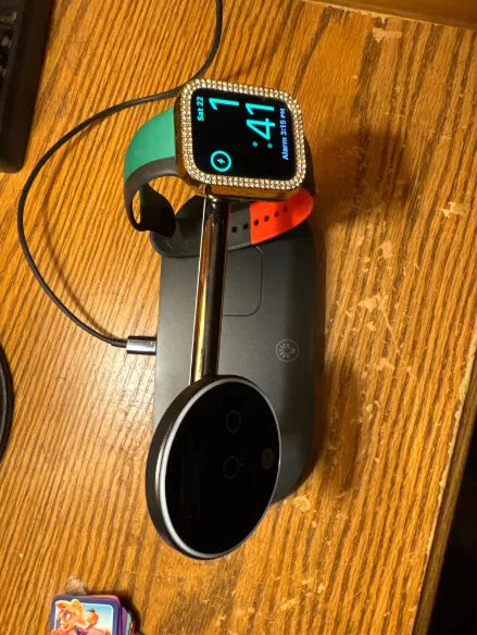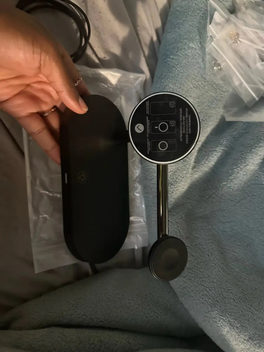 "Wow, best purchase ever! Charges my iPhone, Apple Watch, and AirPods all at once – no more tangled cables. The magnetic feature is solid – no more worries about my phone slipping. Love having everything in one spot, super neat! 💯🔥"
